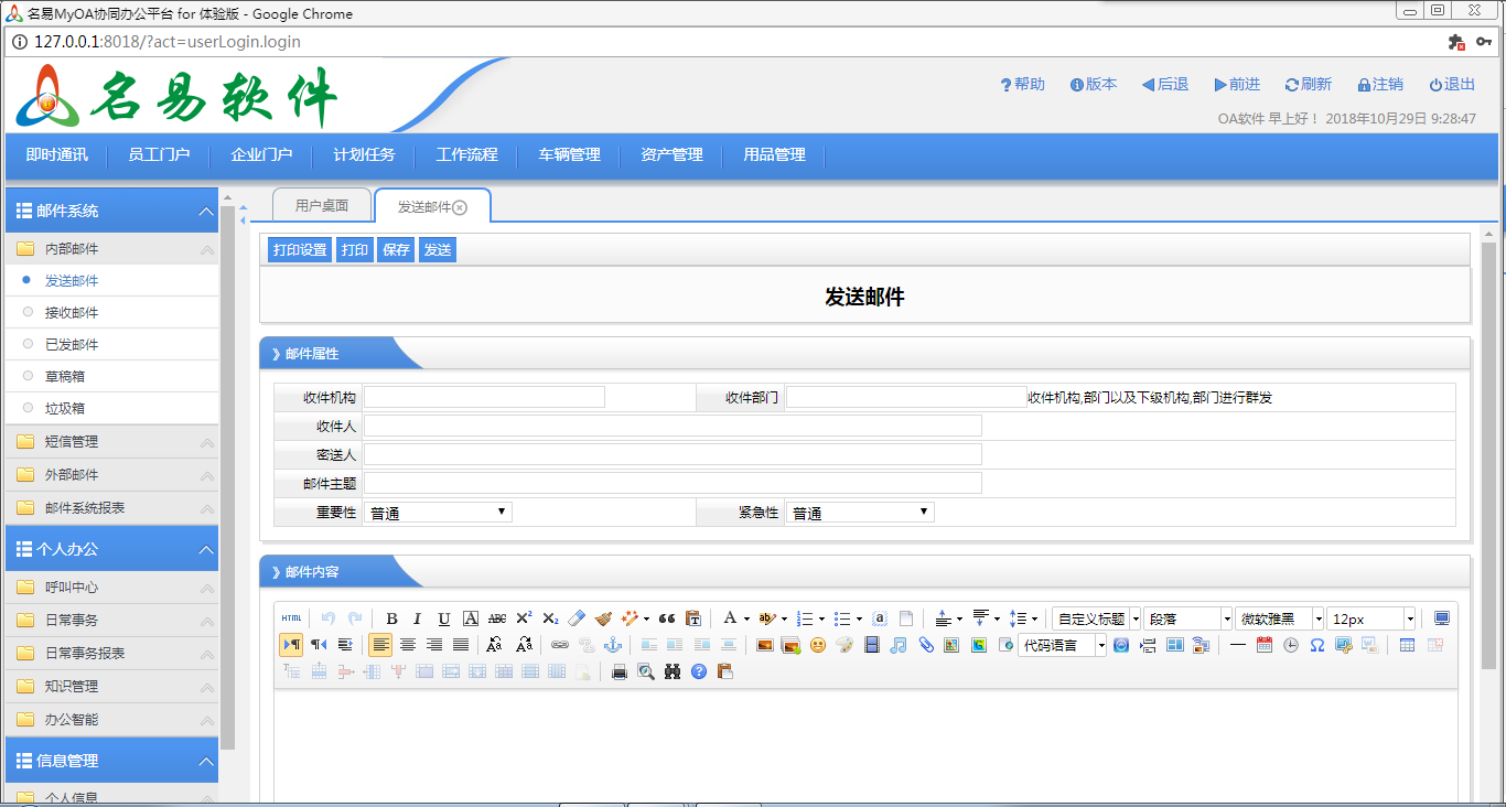 名易OA办公系统的邮件系统功能模块简单说明
